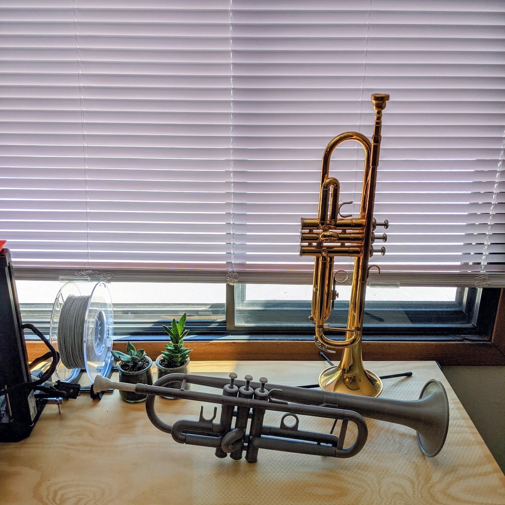Full scale trumpet model! Airways, valves, & slides all modeled to match actual trumpet.