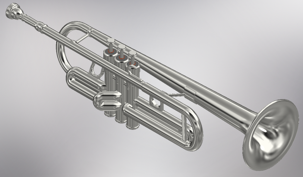 Full scale trumpet model! Airways, valves, & slides all modeled to match actual trumpet.